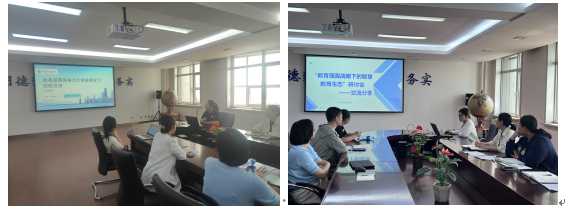 在教师外出学习经验交流分享环节,赴英国西苏格兰大学进修的教师讲述了海外学习经历,参与“教育强国战略下的智慧教育生态研讨会”的教师介绍了智慧教育的前沿技术与应用模式。两位教师结合自身经历,毫无保留地分享了在教育理念和教学方法等方面的收获与感悟,为在场的教师们打开了新的思路,促进了不同教学理念和方法的碰撞与融合。